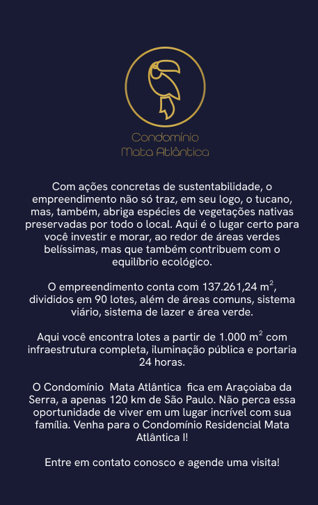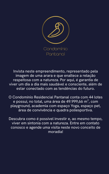 Reservas do Brasil é um empreendimento exclusivo da Delta Empreendimentos, conectado com a natureza. Aqui, é possível sentir a tranquilidade e apreciar uma vista exuberante do Morro de Ipanema. Cada detalhe dos Condomínios Residenciais Cerrado, Mata Atlântica I e Pantanal foi pensado para transformar as suas experiências com conforto, bem-estar e qualidade de vida, além de homenagear os biomas brasileiros. Invista na experiência do Reservas da Natureza! Você merece o melhor!