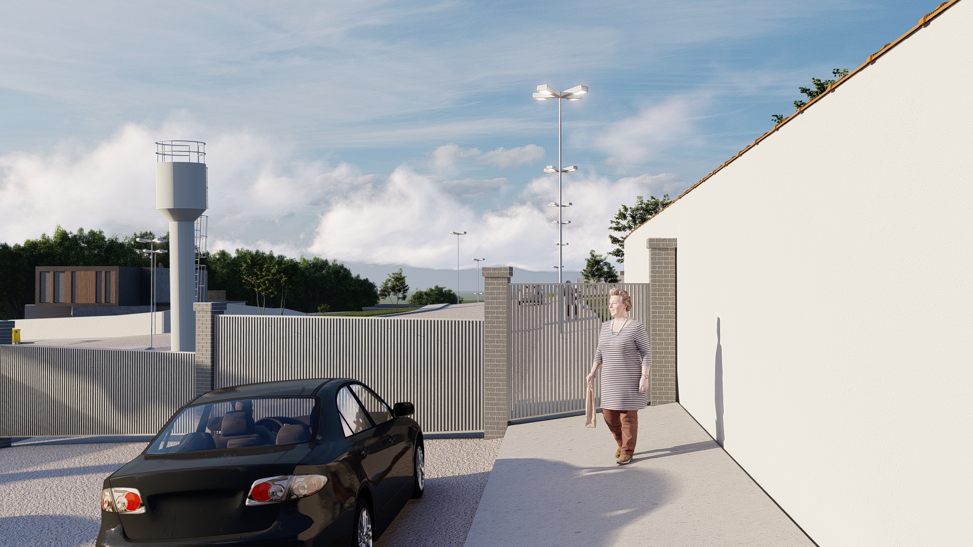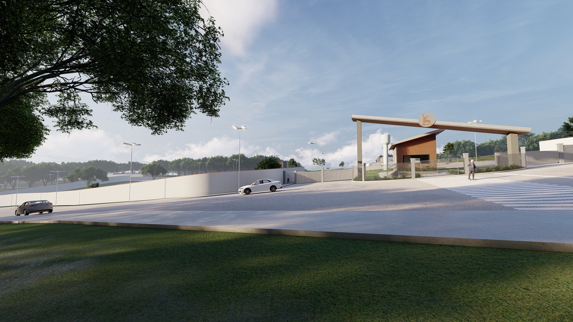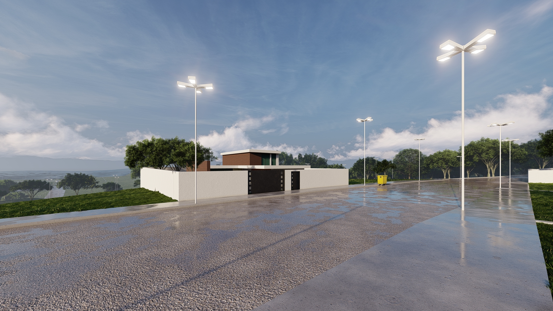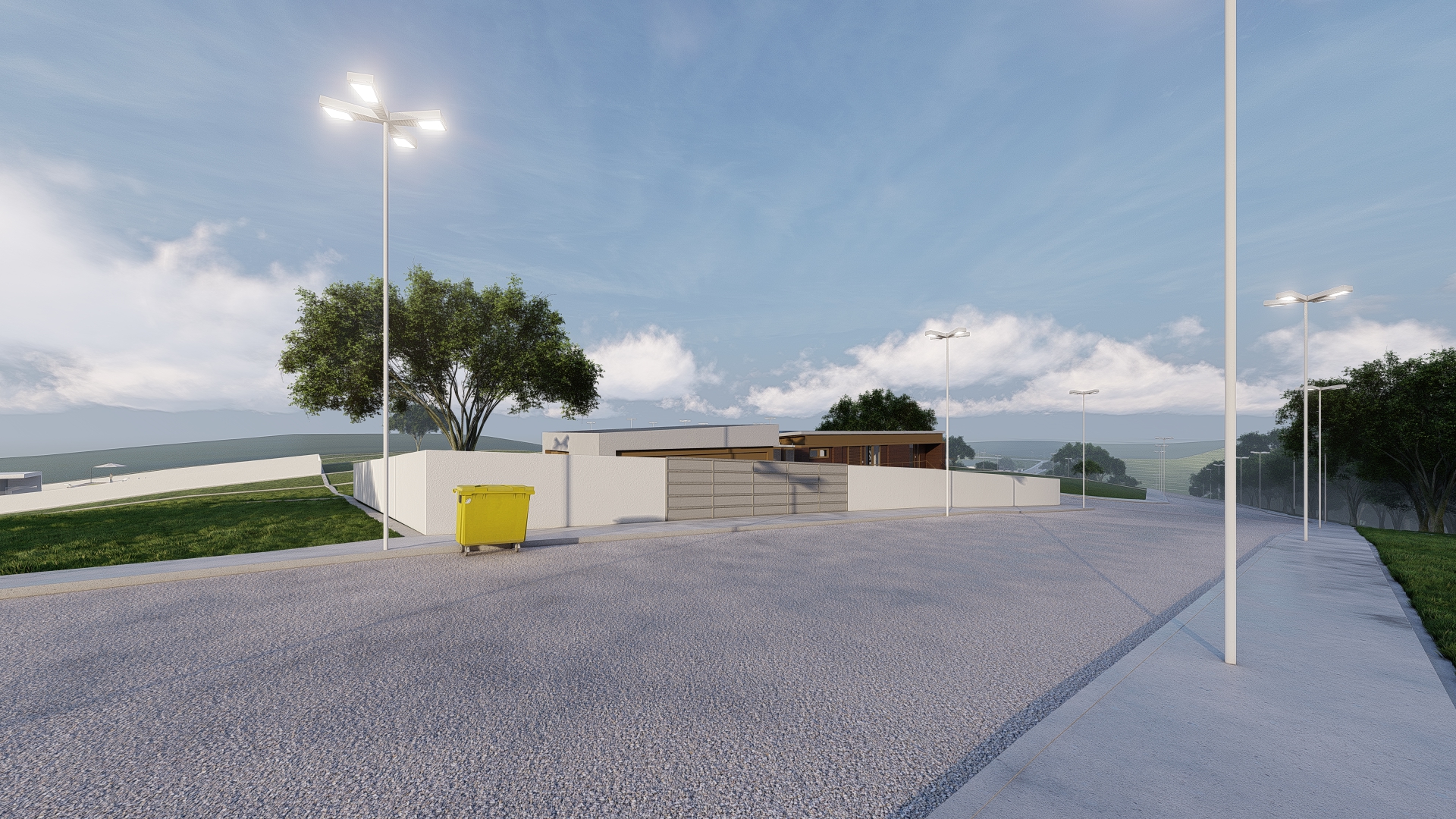 O condomínio conta com portaria e controle de acesso por cancela, o que garante maior segurança para moradores e visitantes. A estrutura inclui pavimentação com guias e sarjetas, além de iluminação pública ao longo de toda a área, proporcionando conforto e segurança mesmo durante a noite.