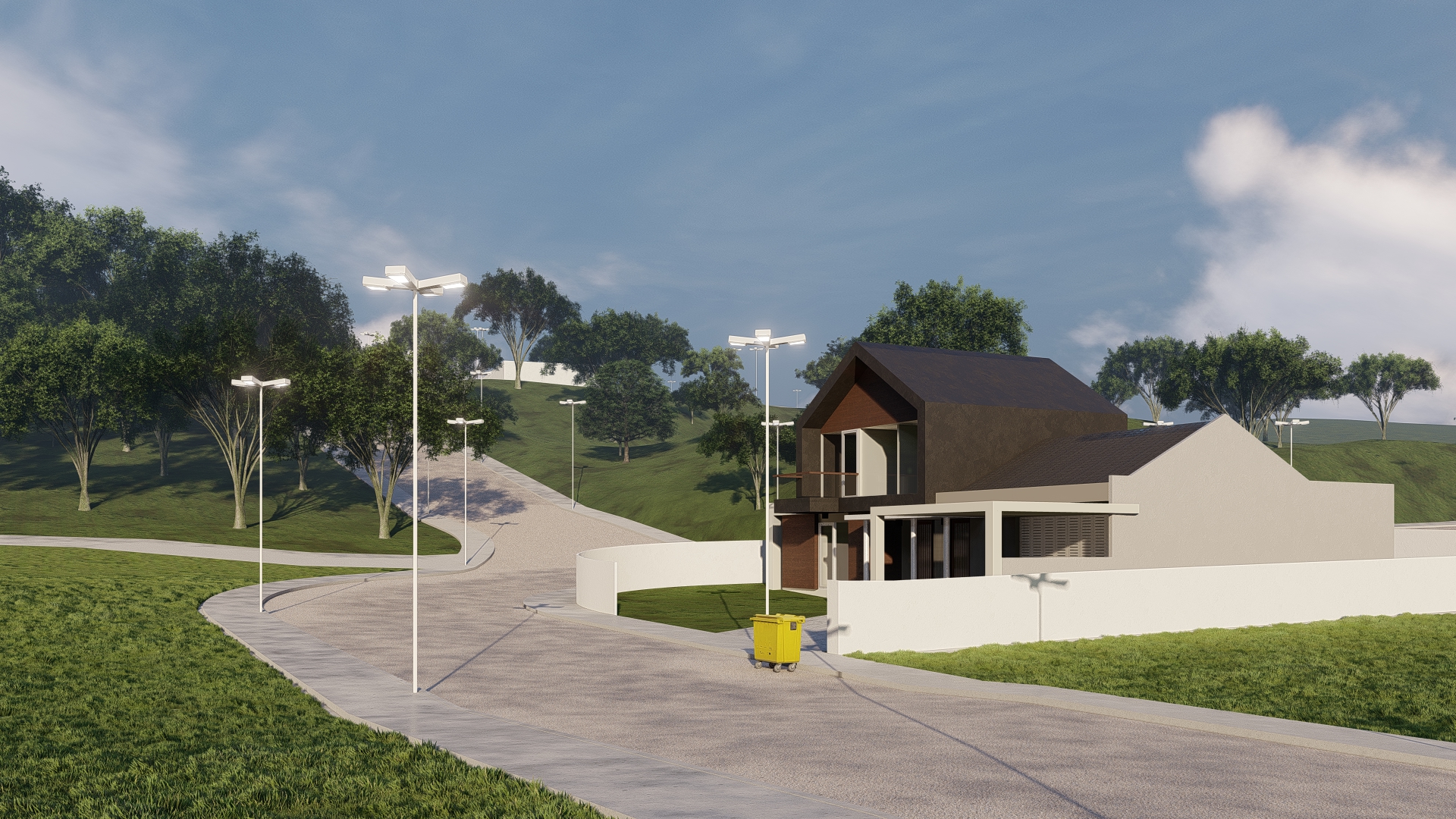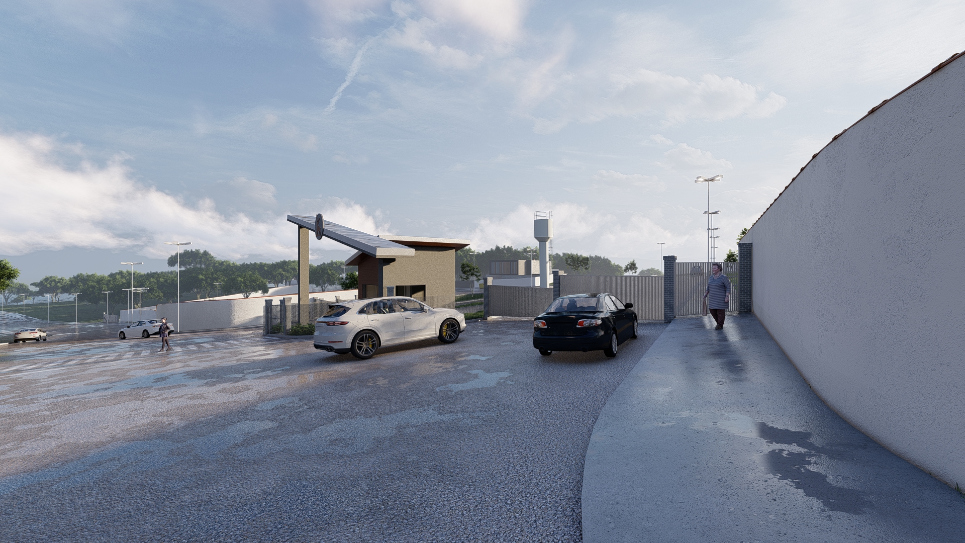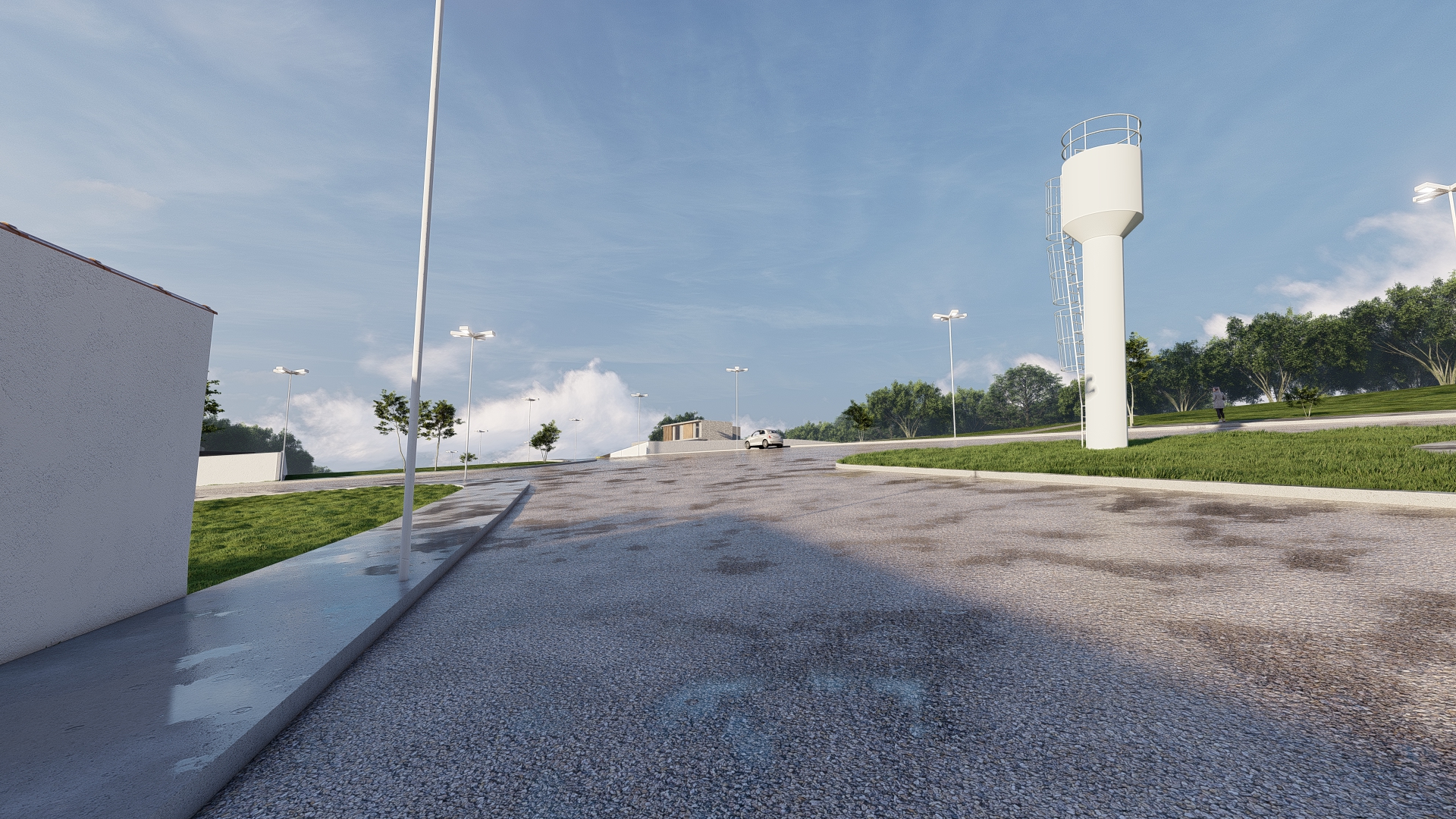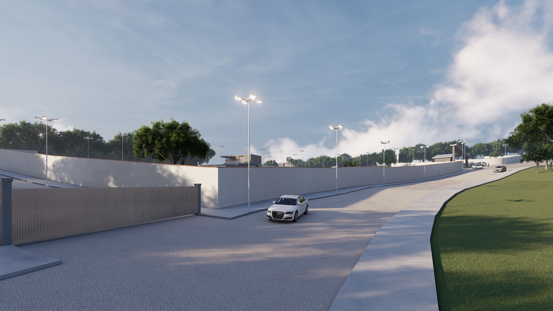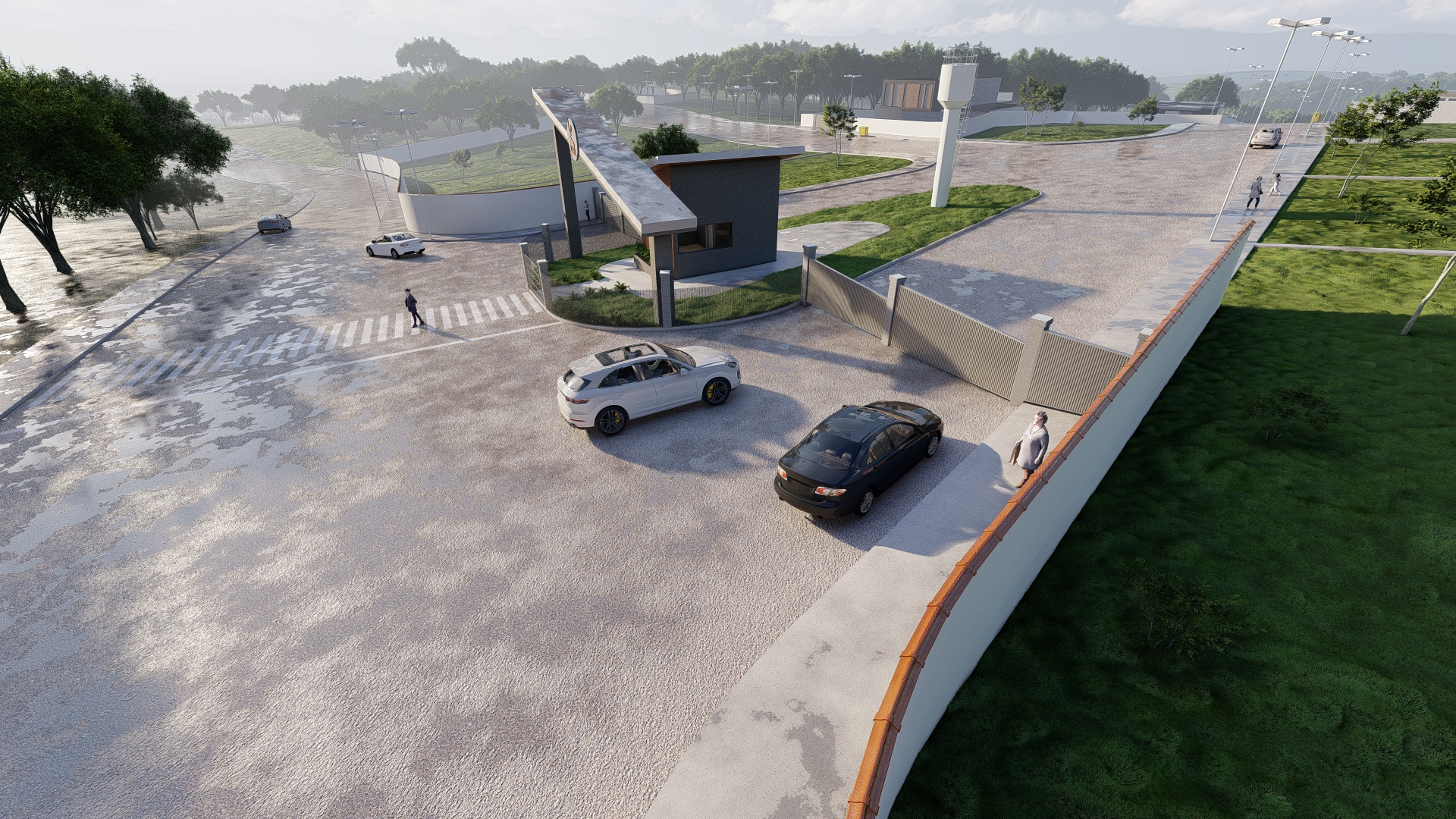 O condomínio conta com portaria e controle de acesso por cancela, o que garante maior segurança para moradores e visitantes. A estrutura inclui pavimentação com guias e sarjetas, além de iluminação pública ao longo de toda a área, proporcionando conforto e segurança mesmo durante a noite.